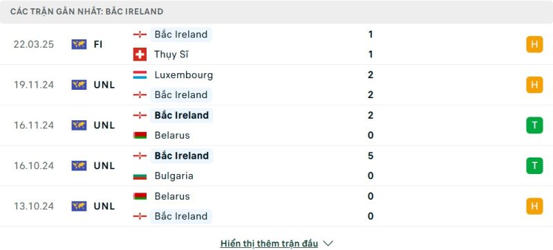 5 trận gần nhất của Bắc Ireland: D-D-W-W-D