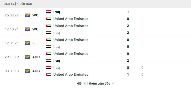 Bảng Tỷ lệ kèo bóng đá UAE vs Iraq