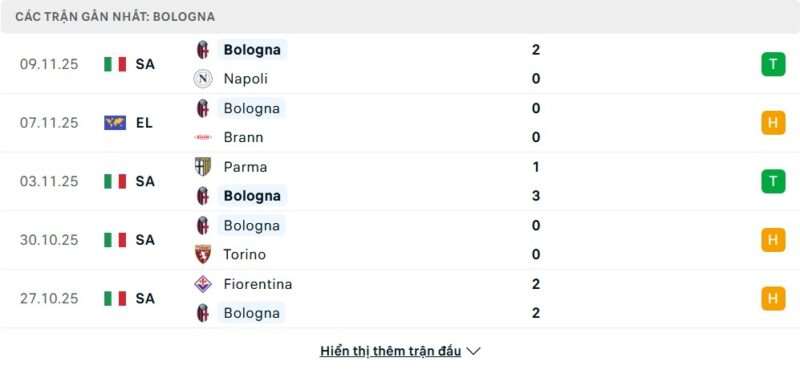 Phong độ của Bologna