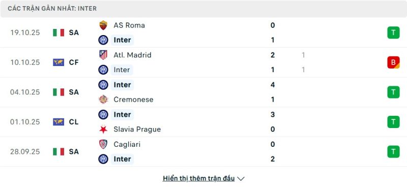 Inter Milan bước vào trận đấu với phong độ cực cao khi đang nằm trong nhóm dẫn đầu Serie A và toàn thắng hai trận đầu tiên tại Champions League. Họ vừa đánh bại Slavia Praha 3-0 và Ajax 2-0, tạm đứng thứ 4 trên bảng tổng sắp châu Âu. Ở giải quốc nội, Inter cũng duy trì mạch thắng ấn tượng với các kết quả trước Sassuolo, Cagliari và Roma. Ngoại trừ thất bại trong trận giao hữu với Atlético Madrid, đội bóng áo xanh-đen vẫn cho thấy sự cân bằng giữa tấn công và phòng ngự, đồng thời sở hữu chiều sâu đội hình giúp họ duy trì thể lực tốt khi thi đấu trên nhiều mặt trận.