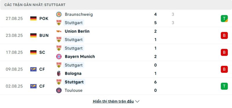 - Phong độ của VfB Stuttgart